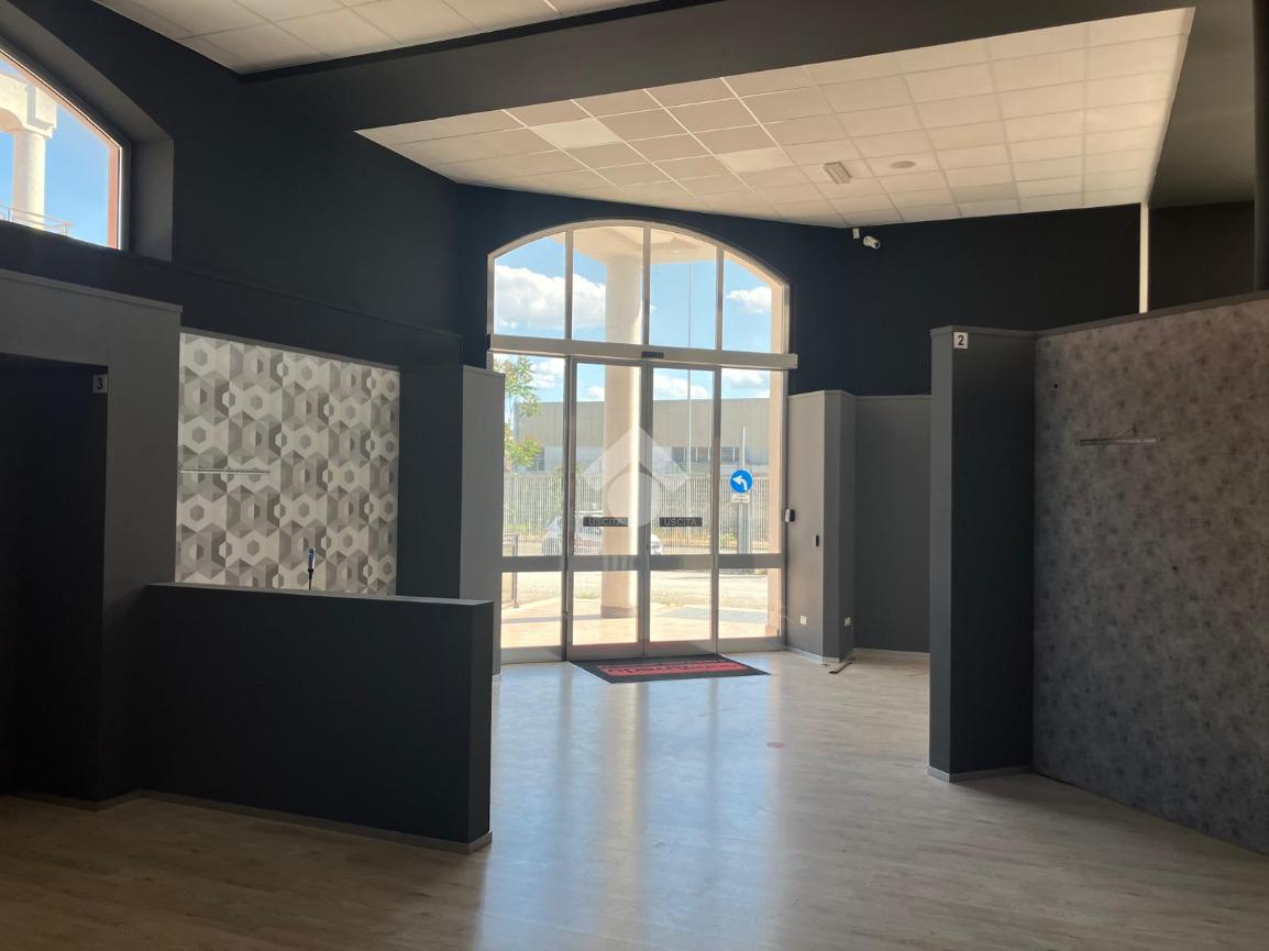 PARTICOLARITA' E DESCRIZIONE. Situato in una zona ad elevato transito veicolare, l'immobile è composto da un unico ambiente con 8 vetrine che donano al locale un'ottima luminosità naturale oltre che un'elevata visibilità . Ha un'altezza di 5 metri. Fruibile per svariate attività.