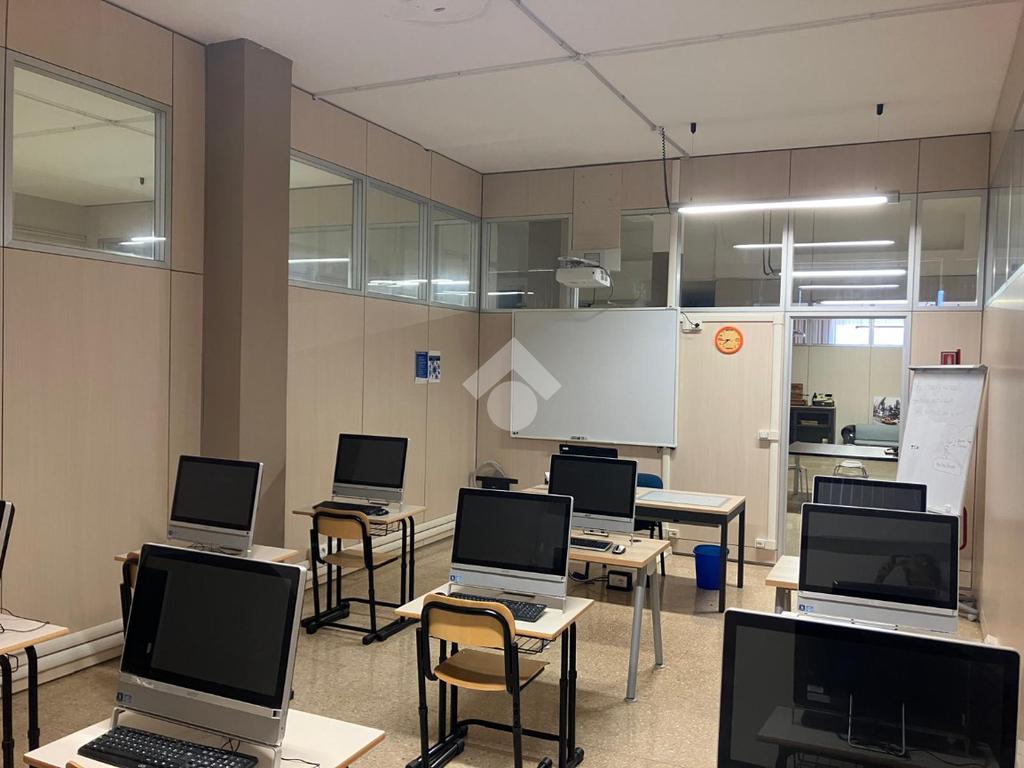 Il capannone che proponiamo in locazione ha una superficie di circa 500 mq, ed è composto da una sala d'ingresso, quattro aule complete di banchi e computer oltre alle lavagne interattive in ognuna, doppi servizi, di cui uno a norma per disabili. In ottimo stato di manutenzione con impianto elettrico ed idrico a norma, condizionamento e riscaldamento.
