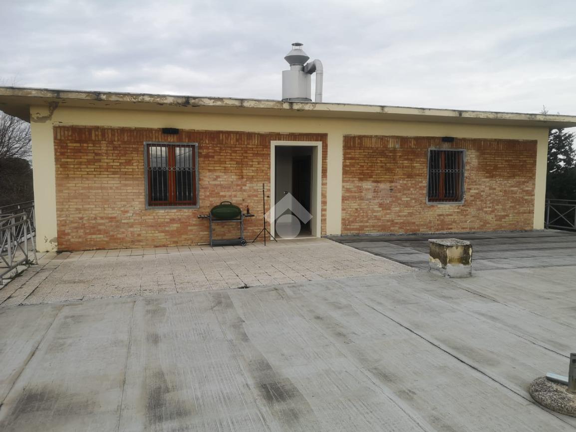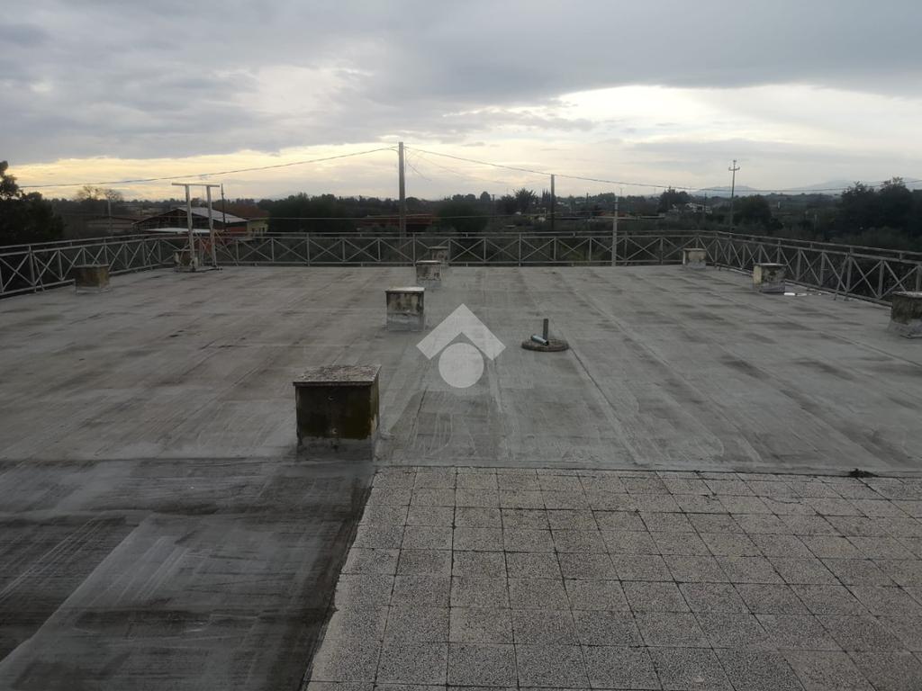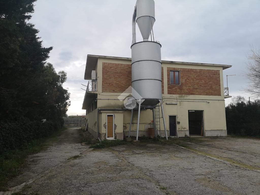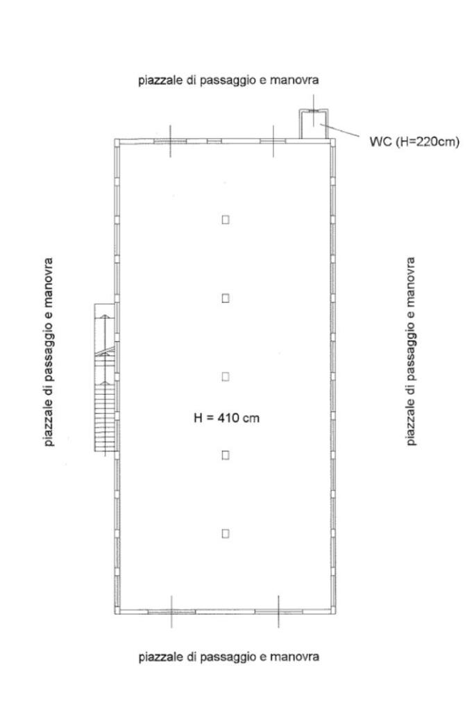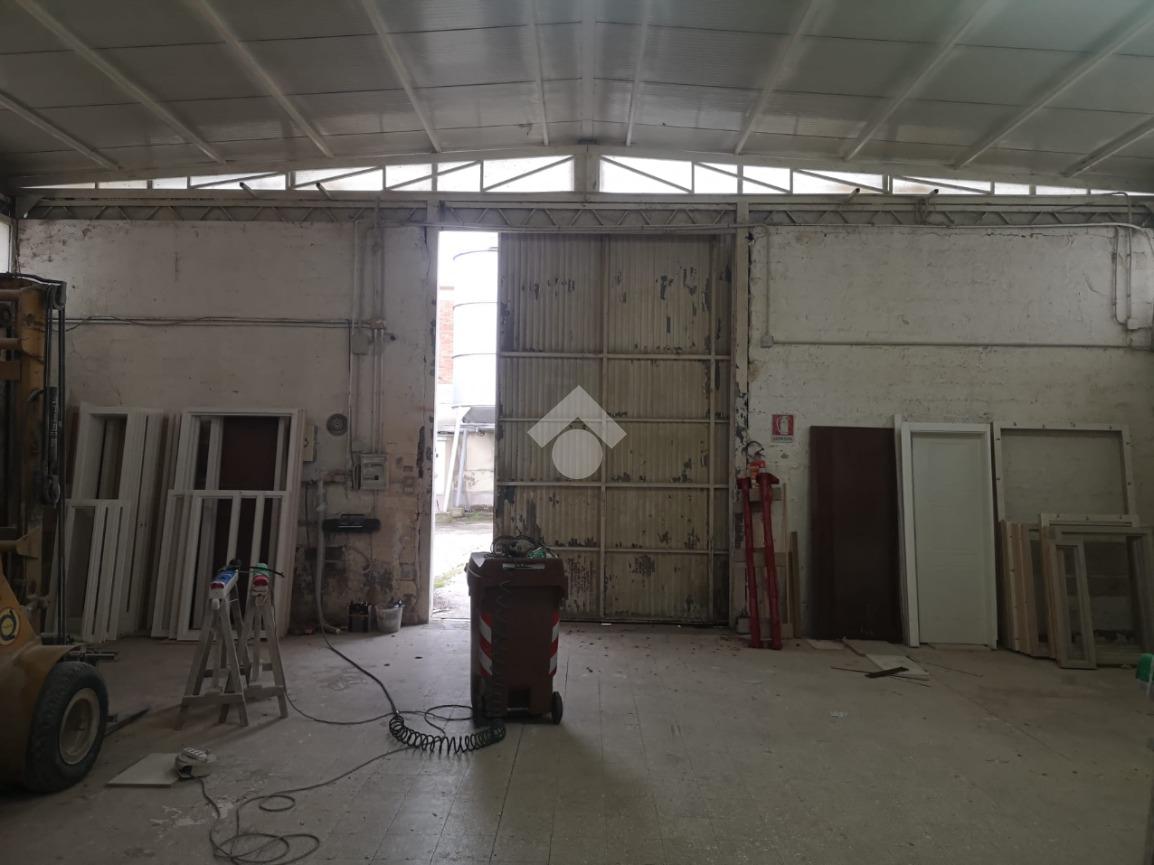 Il fabbricato che proponiamo in locazione è composto da due capannoni rispettivamente di mq 423 ca composto da un ampio open space, con ufficio, magazzino e servizi e mq 714 ca con un unico ambiente con servizi in muratura e due strutture laterali in metallo e copertura in pannelli multistrato, oltre che un appartamento di mq 140 con annesso terrazzo di mq 280 sito al primo piano, al quale si accede tramite una scala esterna. Il primo capannone ha due accessi anteriori e due accessi posteriori con un'altezza massima di 4,10 metri mentre il secondo capannone ha tre accessi anteriori ed un accesso posteriore con un'altezza massima di 5,10 metri. Il complesso di circa 3.000 mq è interamente recintato con un unico accesso fronte strada ed è dotato di piazzale esterno.