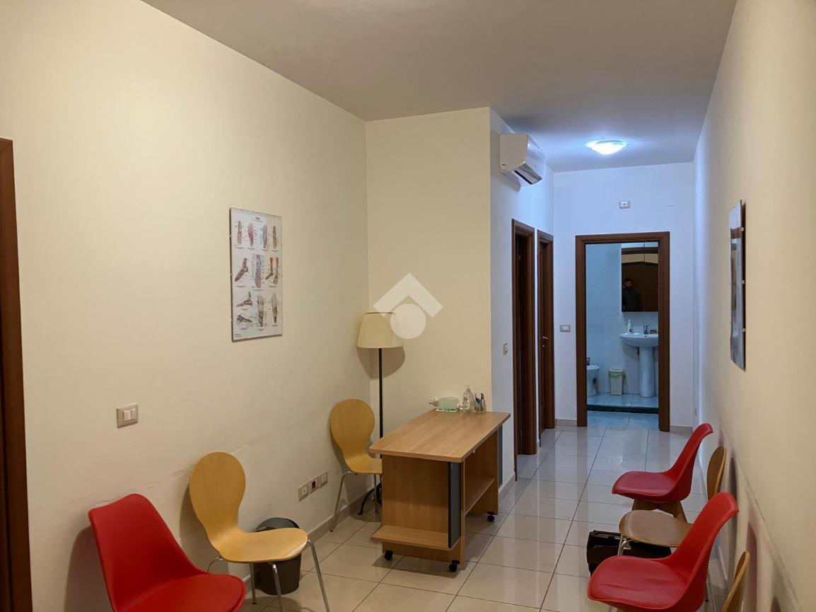 L'ufficio che proponiamo in locazione ha una superficie di circa 80 mq, composto da una sala d'attesa, tre camere operative, servizi e ripostiglio. In ottimo stato di manutenzione con impianto elettrico ed idrico a norma.